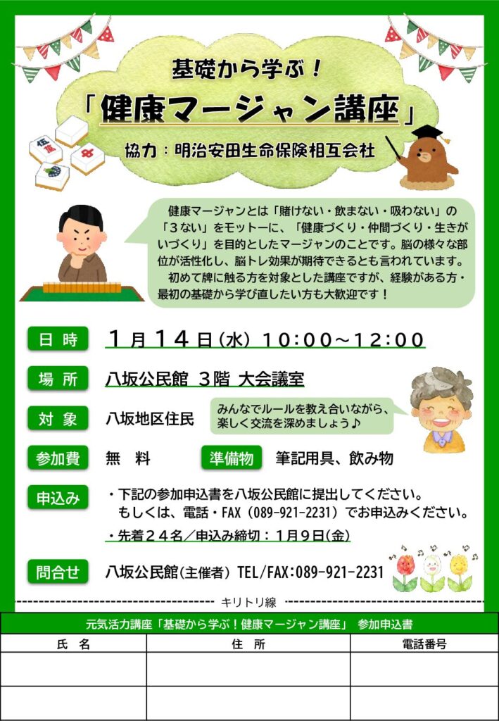 初めて牌に触る方を対象とした講座ですが、経験がある方・最初の基礎から学び直したい方も大歓迎です!