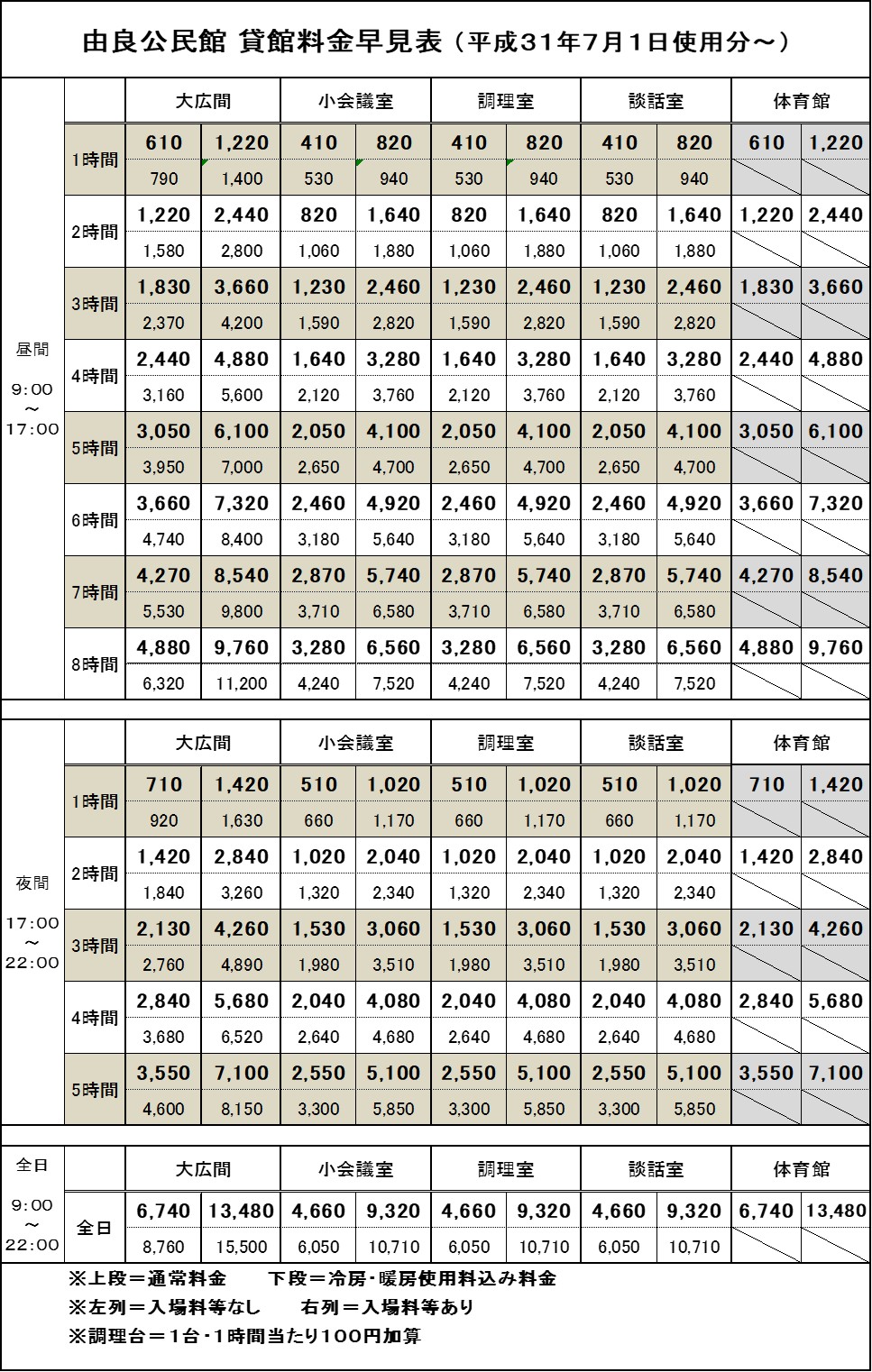 入場料その他これに類するものを徴収する場合は、使用料の額の100パーセントを加算します。